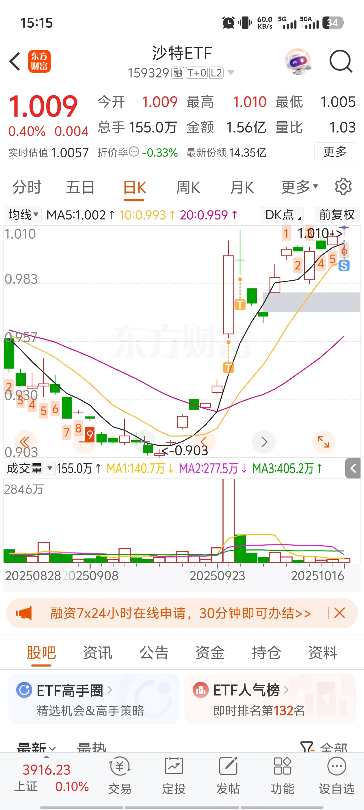 $沙特ETF(SZ159329)$ 故意的吧,今天刚清仓,涨的这么好
