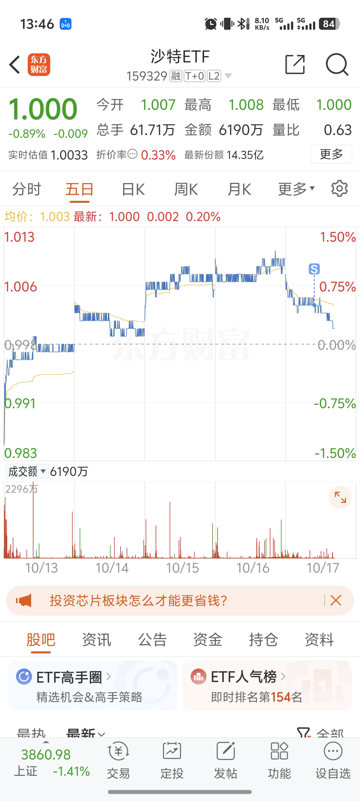 $沙特ETF(SZ159329)$ 清仓了,不玩了,等一段时间吧