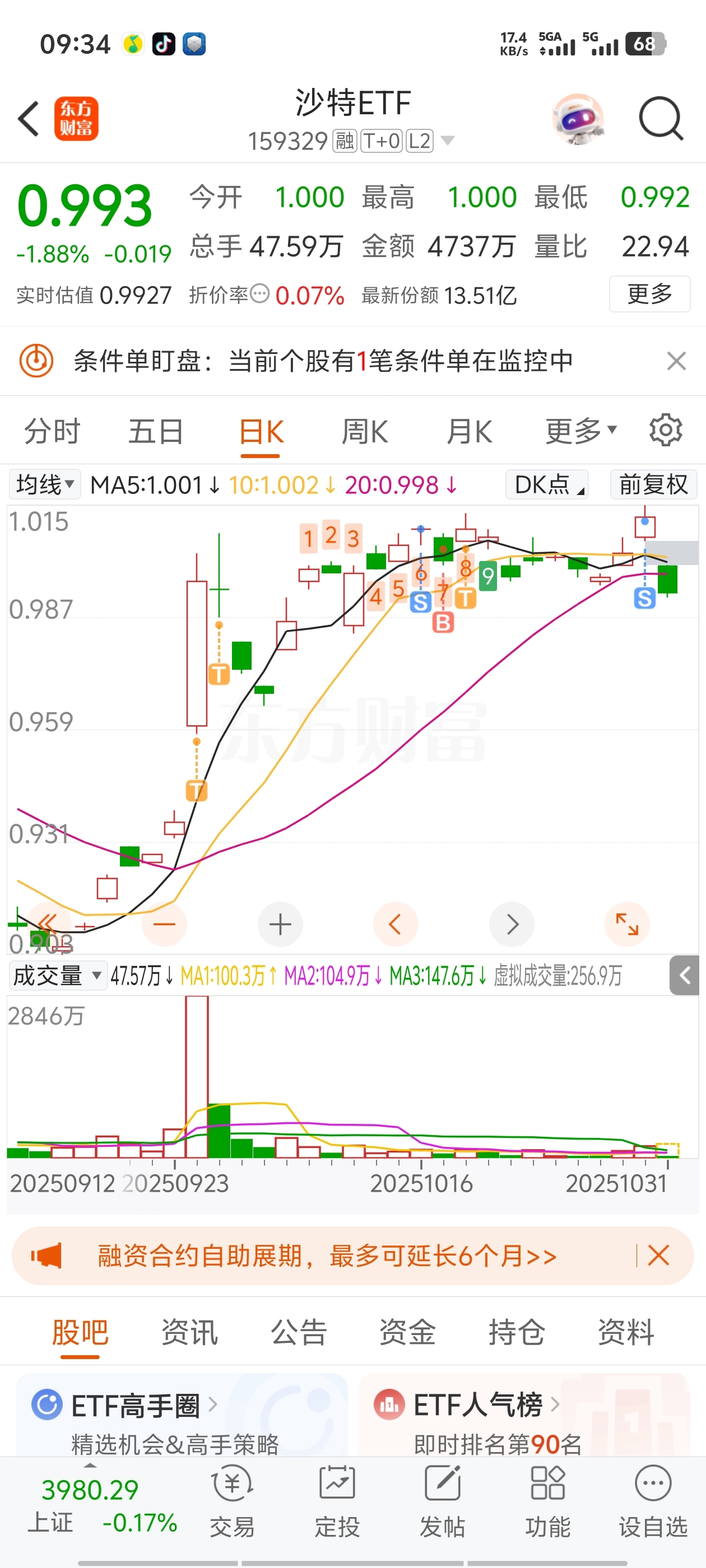 $沙特ETF(SZ159329)$ 昨天还后悔卖了,今天终于松了一口气