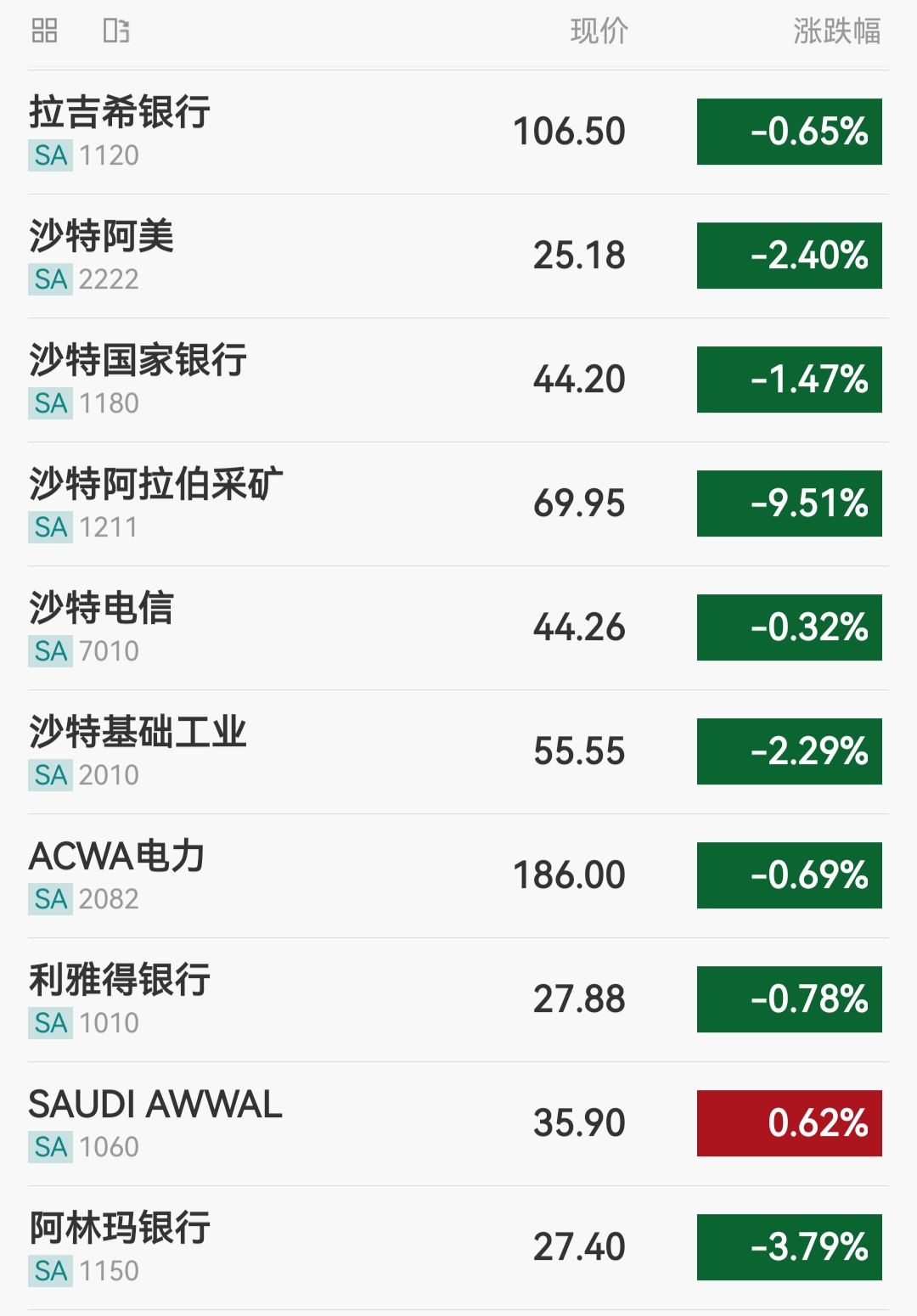 沙特股市在上周日暴跌,创去年六月以来最大跌幅。