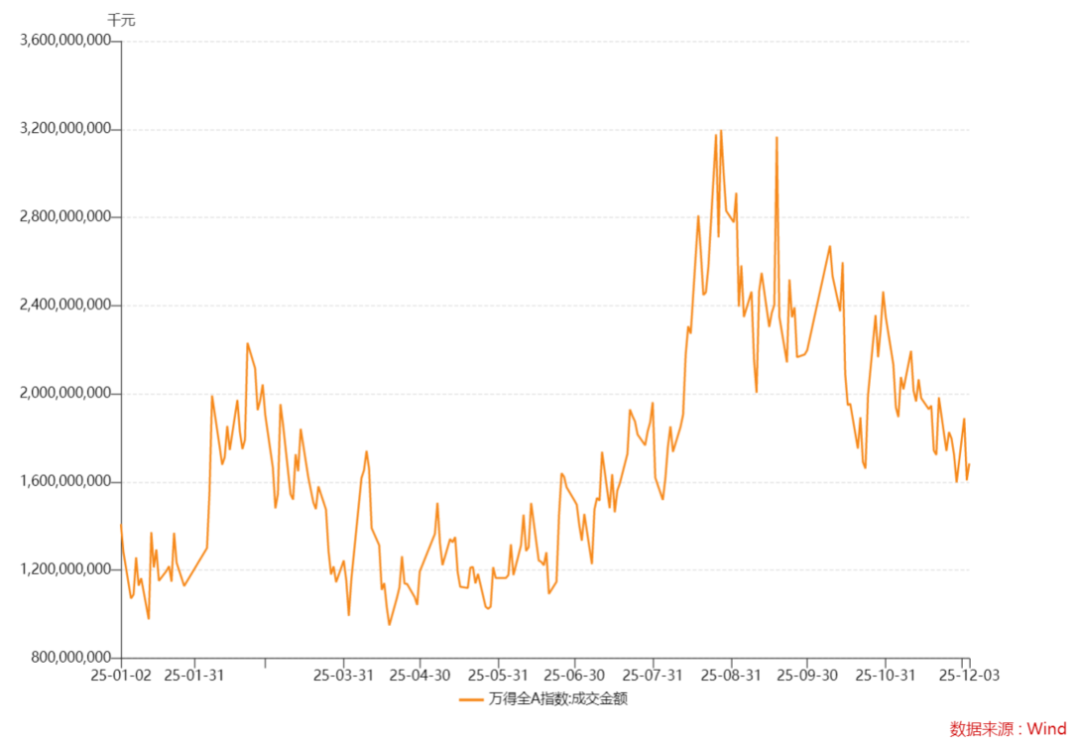 最近市场情绪并不亢奋,万得全A成交量也在逐步放缓。