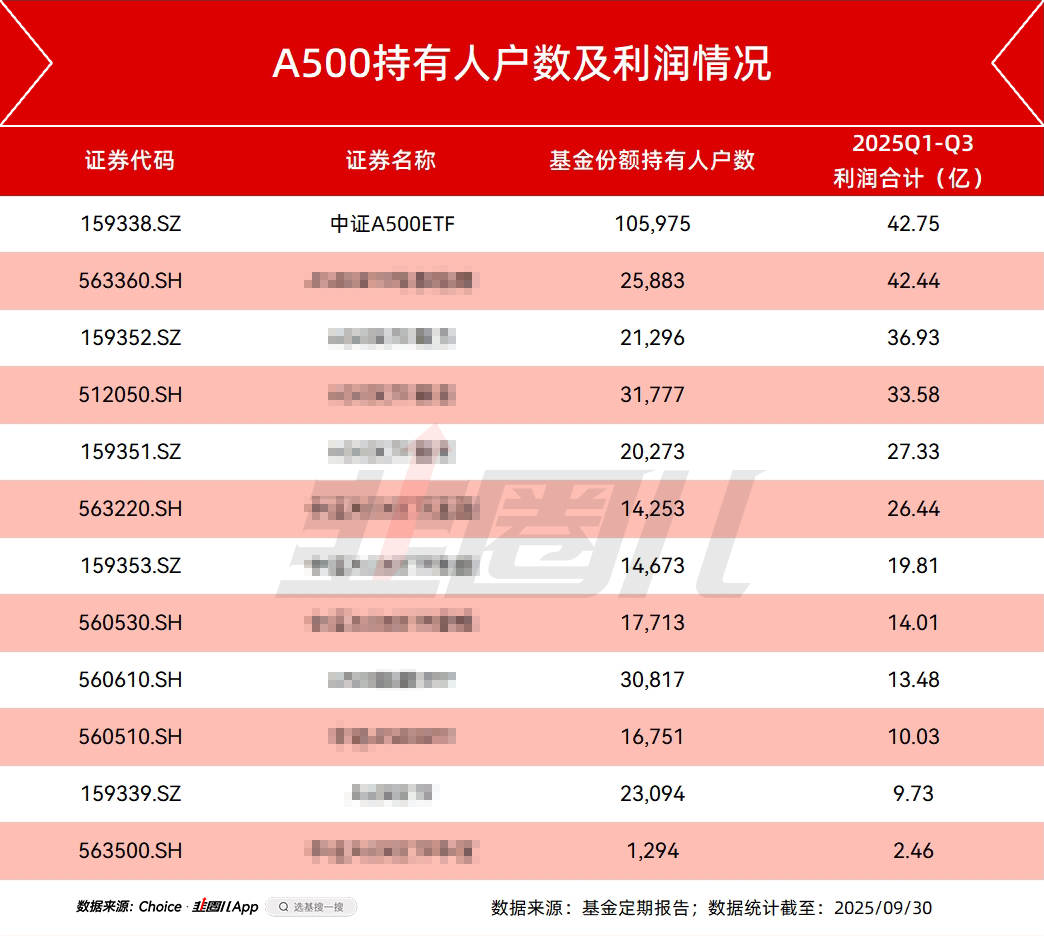 而且今年Q1-Q3,3个季度的基金利润求和的话,中证A500ETF(159338)的利润是43亿,也是最好的那个。