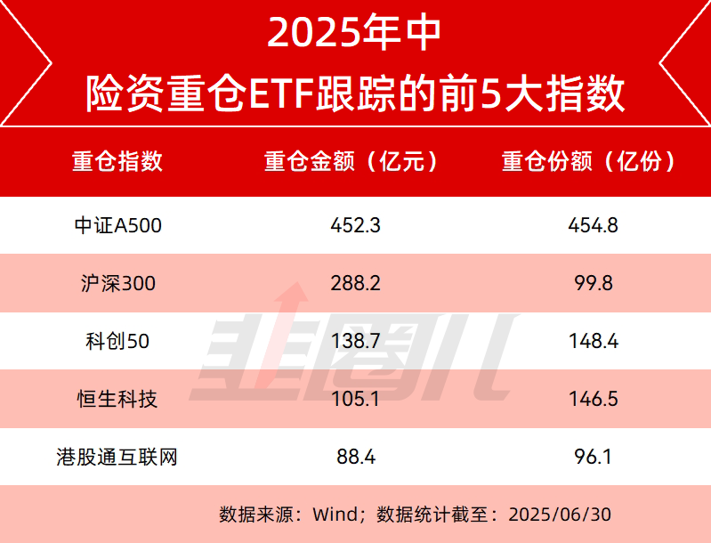 Wind数据显示,2025年中报险资持有的ETF所跟踪的前五大指数里,中证A500就排在第一位。