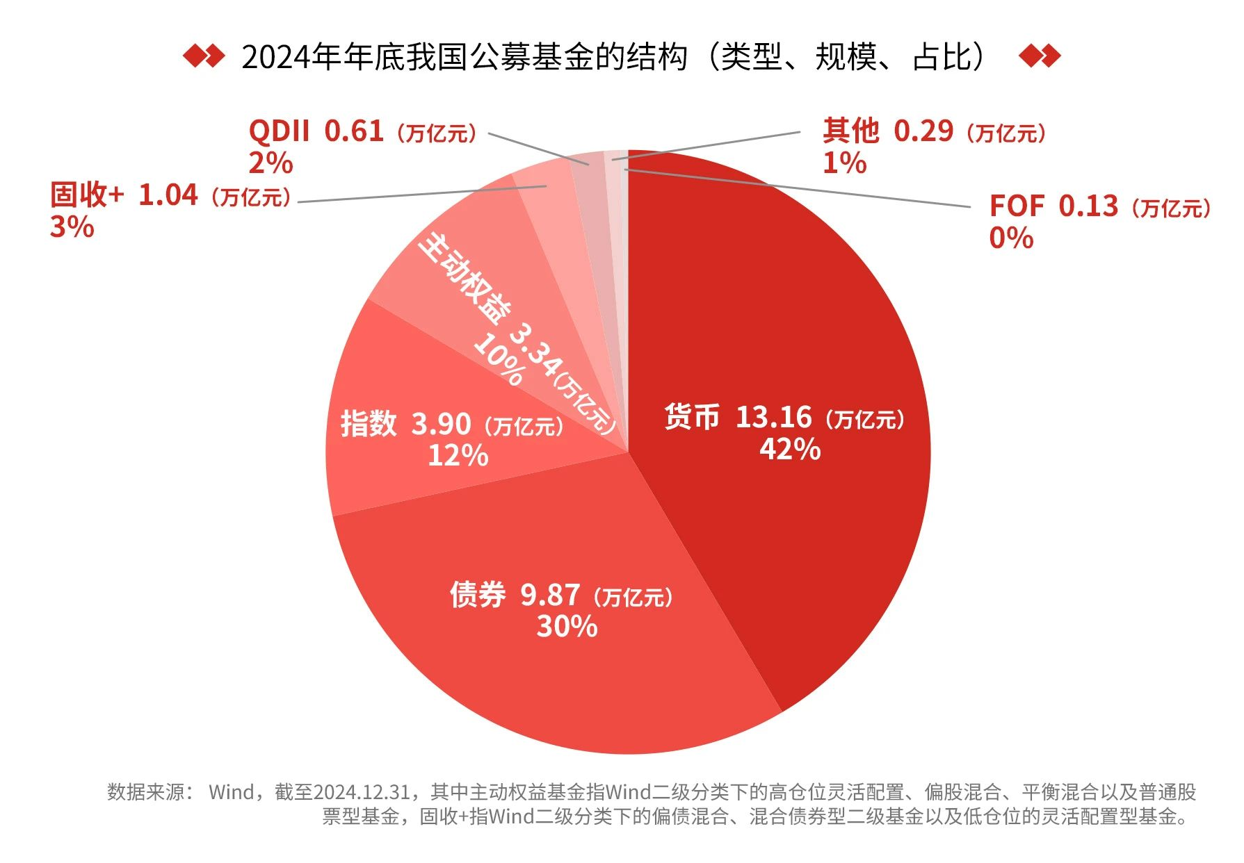 根据数据统计,截至2024年底,被动权益类指数基金规模达3.96万亿元,首次超越主动权益基金,成为第三大基金类型。
