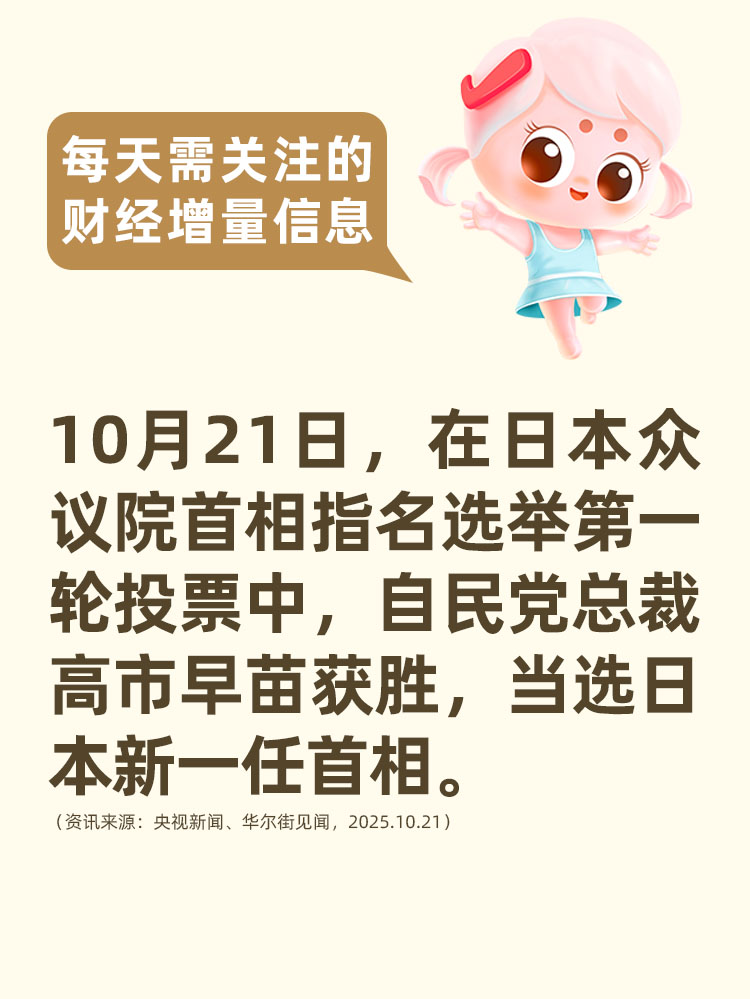 【每天需关注的财经增量信息】10月21日,自民主党总裁高市早苗当选日本新一任首相