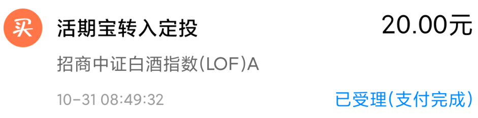 白酒的小额定投继续 $招商中证白酒指数(LOF)C(OTCFUND|012414)$