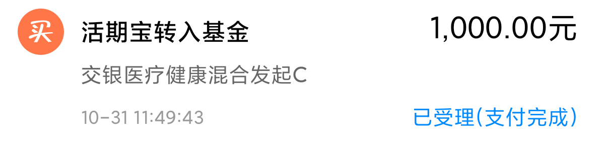 买进1000的 $交银医疗健康混合发起C(OTCFUND|019346)$
