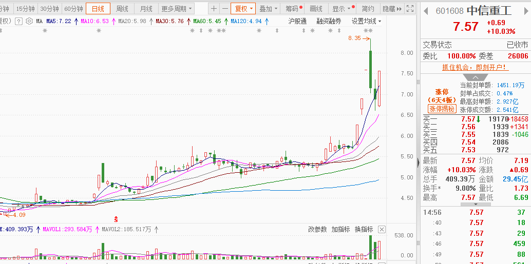 中信重工:人形机器+海洋经济。该股前期已经爆发过一波,只是冲四板失败,但调整两天后股价在10均线缺口附近再次企稳反包拉升涨停,封单有点弱只有1400多万,连板动力不是很强,不过量跟上了,释放了一定抛压,均线依然向上多头发散,股价位置回到相对低位,有继续拉升动力,主要看资金承接能否跟上了,所以早盘先留意下,如果大幅度低开放弃,5均线上方寻找机会。