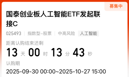 $国泰创业板人工智能ETF发起联接C(OTCFUND|025493)$正在火热募集中,正好躲过了这波调整风险,等募集结束就可以分批建仓了,对于新发基金来说,有调整反而是好事,可以低吸更多便宜筹码。