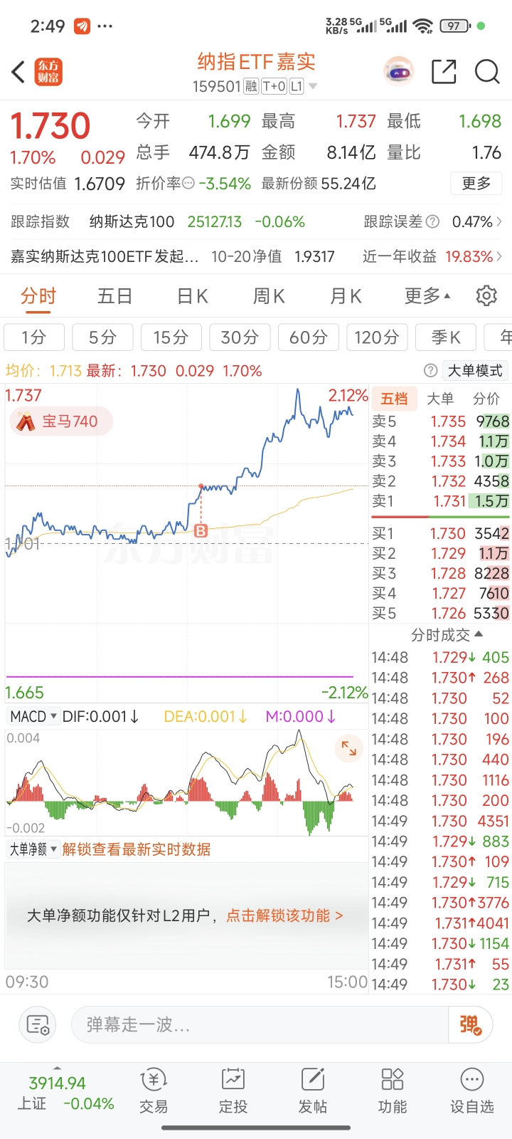 $纳指ETF嘉实(SZ159501)$ 以为买在山顶,结果买在山脚