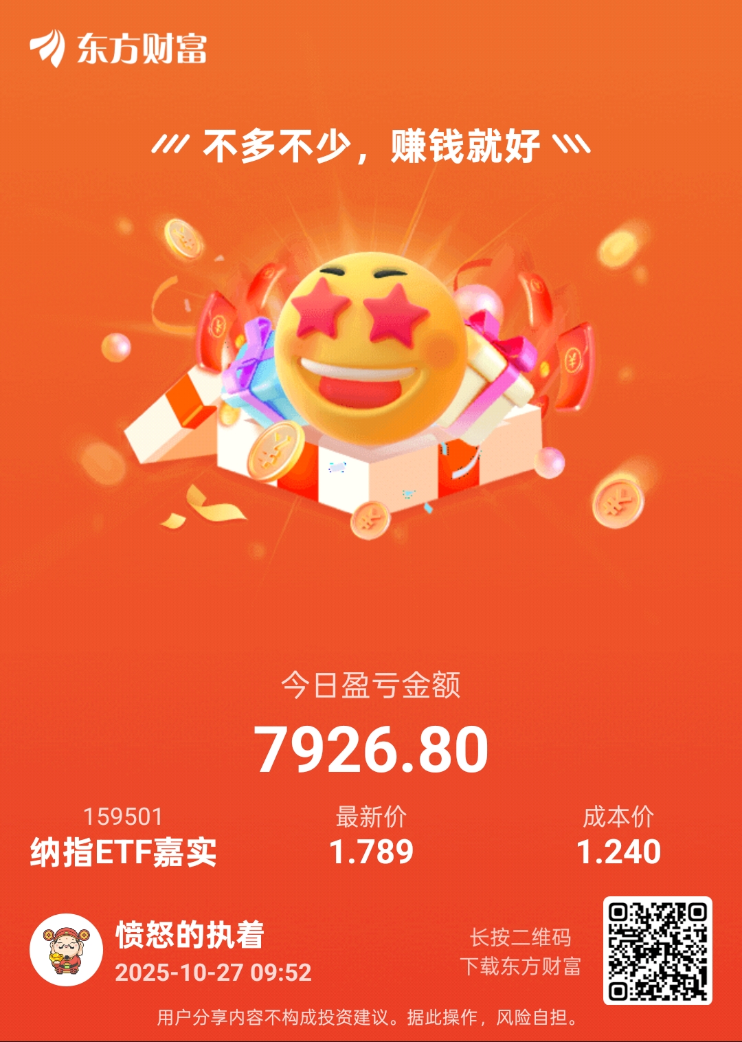 $纳指ETF嘉实(SZ159501)$ 真的很强