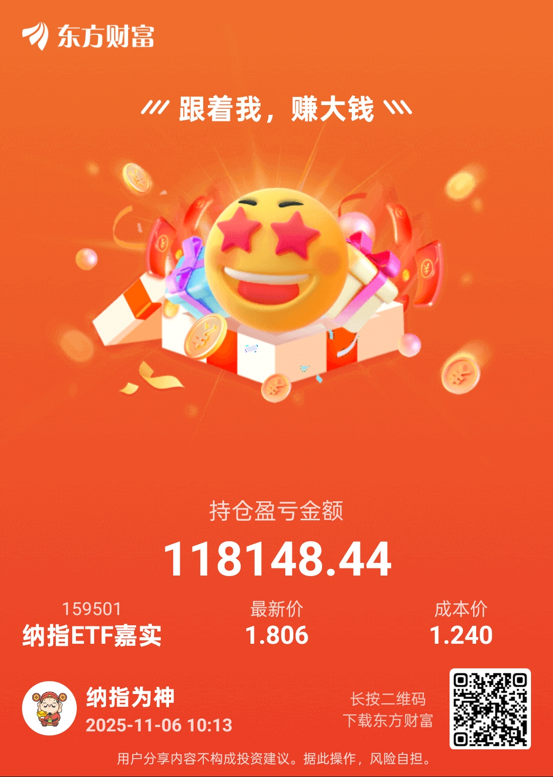 $纳指ETF嘉实(SZ159501)$ 穷人路过