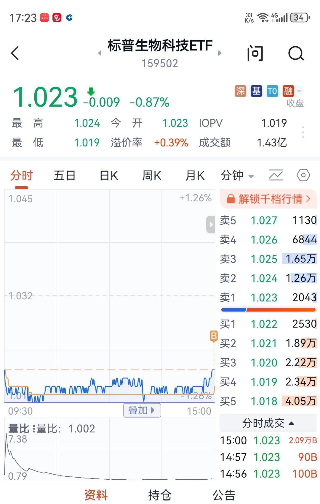 $标普生物科技ETF(SZ159502)$ 标生科己基本调整到位,尾盘集合竞价接回原仓位。明天跳空高开吃肉!