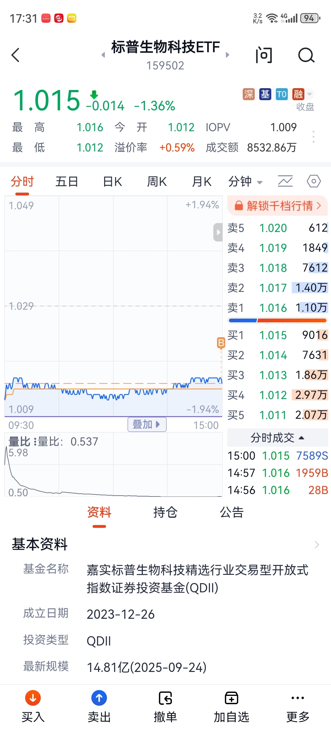 $标普生物科技ETF(SZ159502)$ 今天标普油气上涨乏力,趁其冲高清仓,尾盘集合竞价增仓标普生科。从特朗普宣布对进口药品增加关税和豁免条件来看是利好美国生物板块的。下周一如现上升强势则头铁再次加仓!