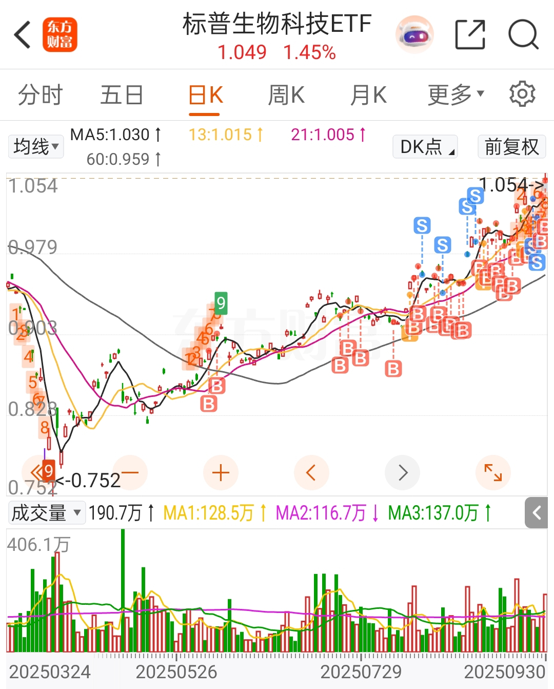 $标普生物科技ETF(SZ159502)$ 虽然当时在投资上是小白,不敢入黄金坑,但现在回过头看也算相对成功的右侧交易了节后能顺利涨停的话,那也就弥补了今年错过创业板大行情的遗憾