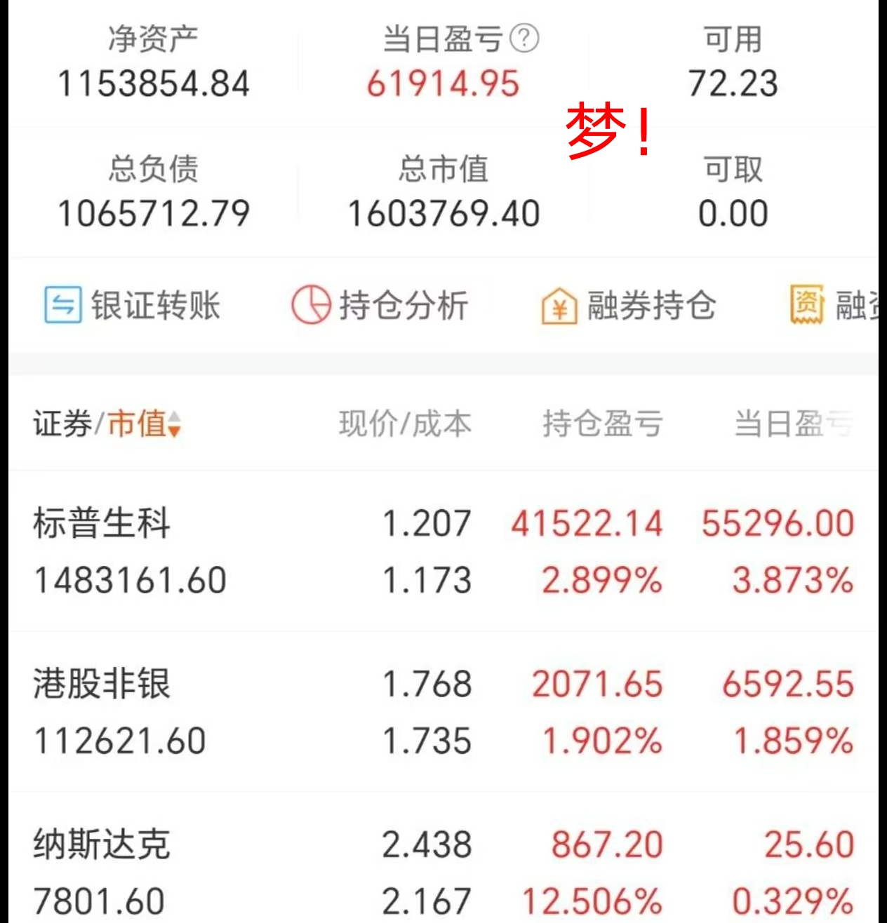 恭喜家人吃大肉,今日标普生科暴涨。长线再度突破新高。分账户是有好处的,长短分开,