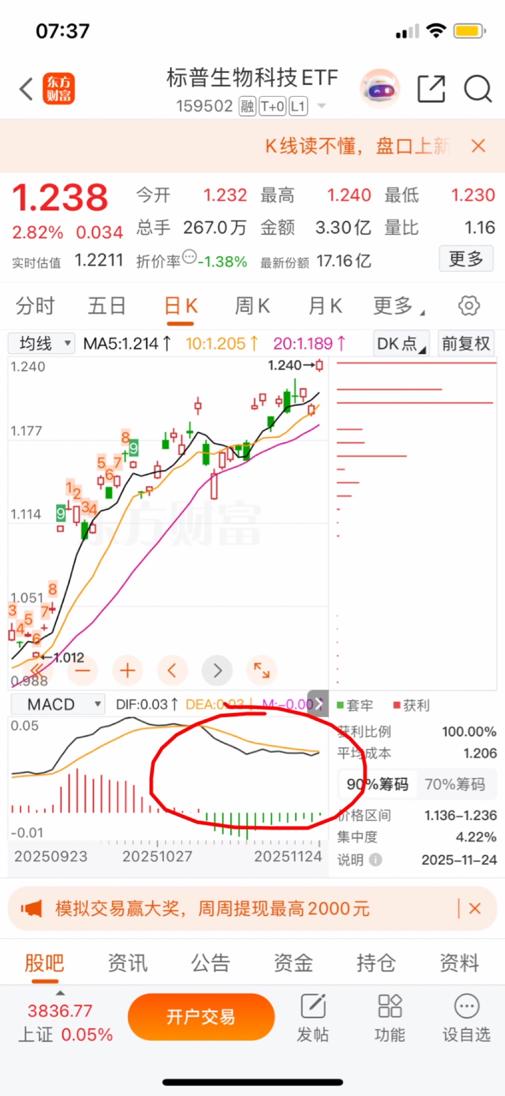 $标普生物科技ETF(SZ159502)$ 今天变红柱
