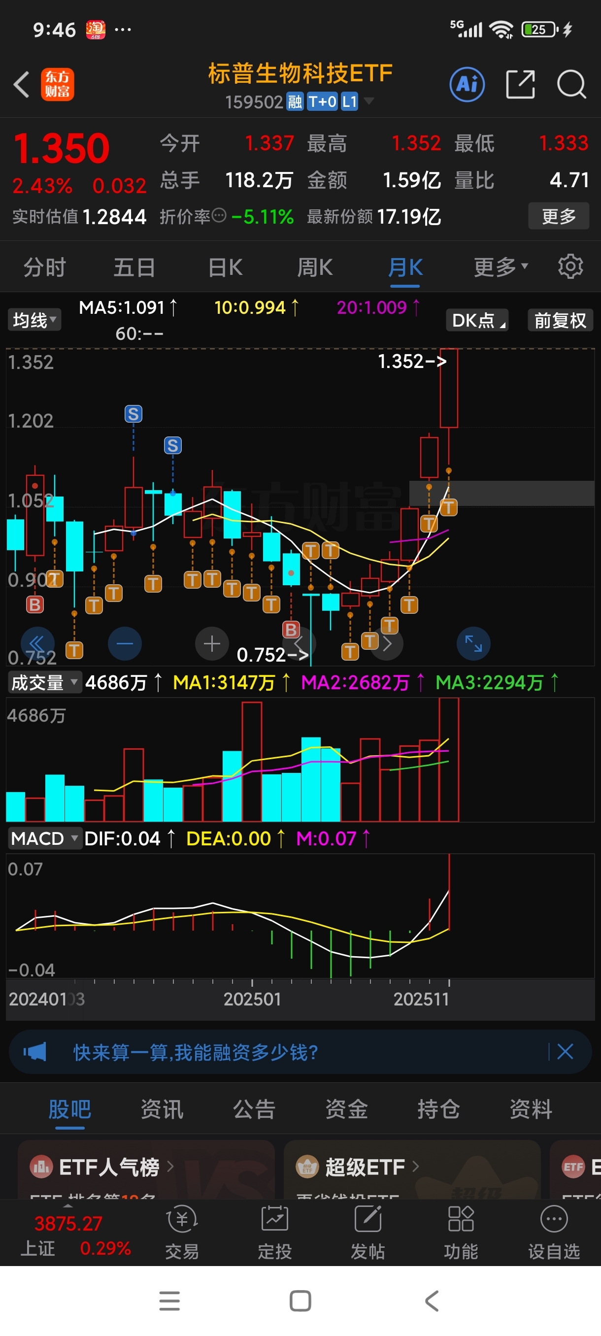 $标普生物科技ETF(SZ159502)$ 1.111卖飞了,谁知道会涨这么高