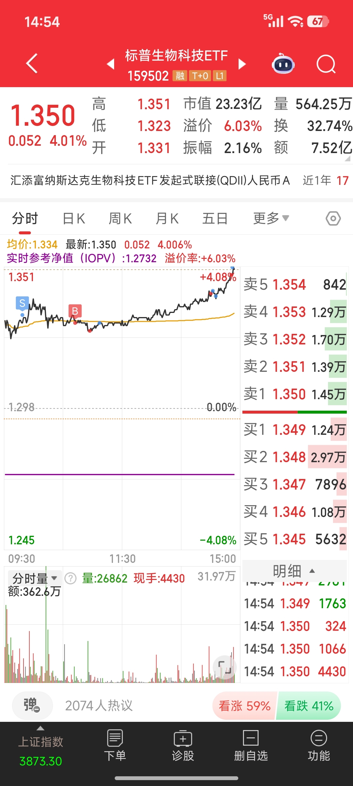 $标普生物科技ETF(SZ159502)$ 由于哈基米的骚扰,严重卖飞!!