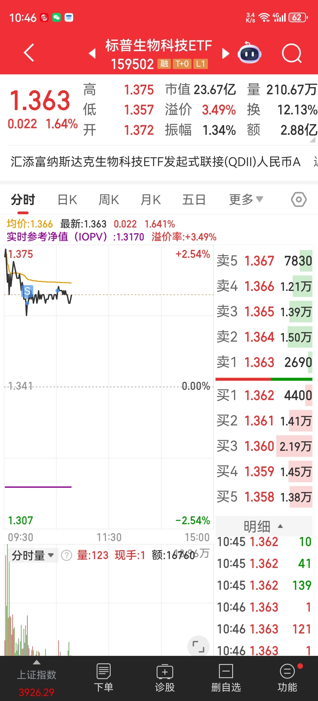 $标普生物科技ETF(SZ159502)$ 上攻乏力,看主力净额-1202万,无需犹豫先清仓出来歇歇!