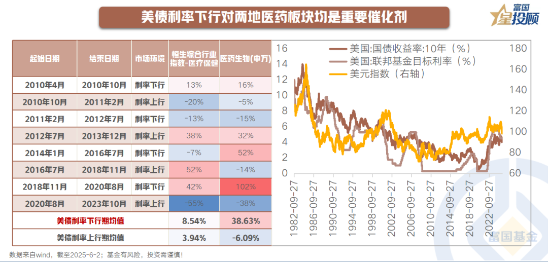 美债利率下行通常伴随全球流动性环境改善,风险资产估值中枢上移。医药板块作为高成长性赛道,对利率敏感度较高,资金成本下降直接降低企业融资压力,同时提升市场对远期现金流的贴现估值。2021年以来,美元与美债收益率上行导致美元资产吸引力显著提升,新兴市场股市流动性承压。当前,美联储降息周期或仍在进行中,海外流动性趋向宽松。港股相比A股,受海外流动性影响更直接,美元走弱与美债收益率下行利于港股市场反弹。同时,美债利率下行对A股医药板块也是重要催化剂,且国内资金情绪易共振、政策红利落地及盈利韧性或为A股医药板块带来“确定性溢价”。