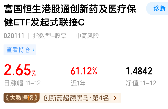 政策上利好不断,自2025年11月1日起,香港"1+"新药审批机制已扩展至所有新药,简化了审批流程,体现了"好药港用"的政策方向,有利于吸引更多全球新药在港注册,对创新药企业是个长期利好,超跌的创新药或会迎来持续上涨。$富国恒生港股通创新药及医疗保健ETF发起式联接A(OTCFUND|020110)$