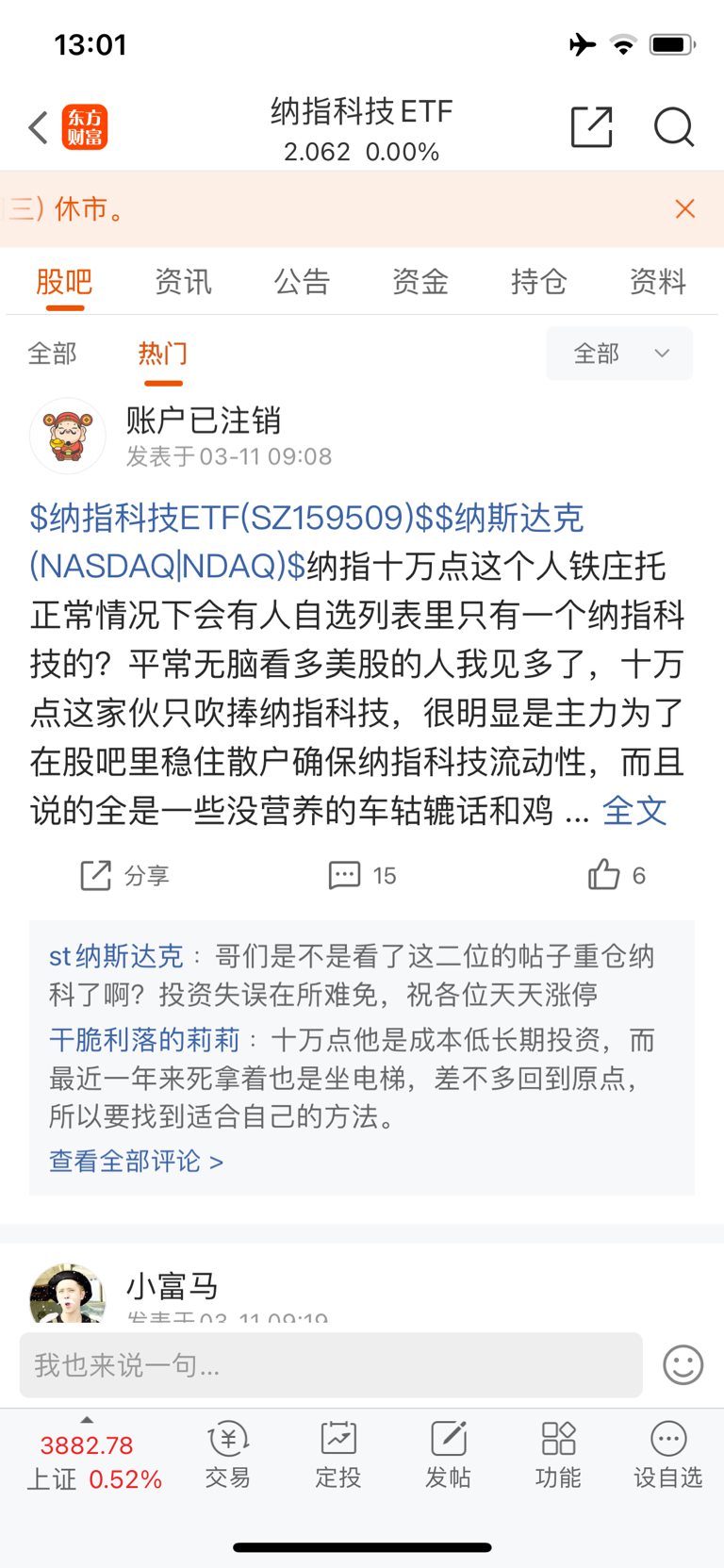 $纳指科技ETF(SZ159509)$ 咱们能不能别注销账号或者删帖子,无论哪种言论,都等时间来证明对错。这是我的一大乐趣,这些人不懂我,更不懂纳指科技ETF的价值
