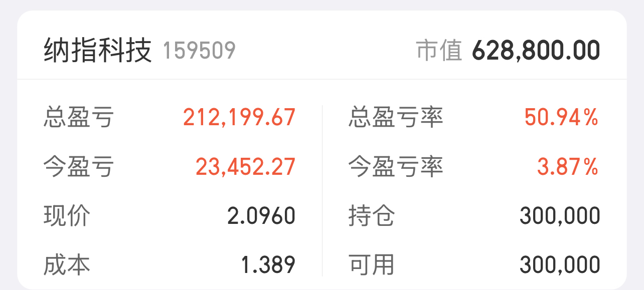 $纳指科技ETF(SZ159509)$ 比节前的价格,降低成本0.048