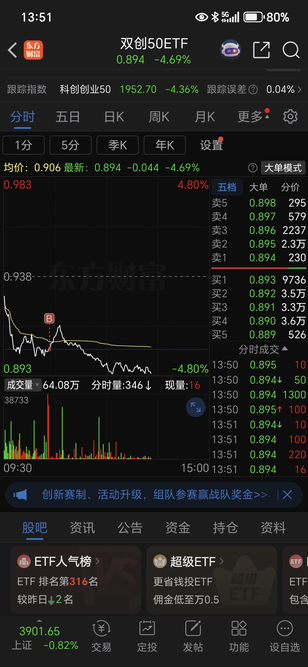 $纳指科技ETF(SZ159509)$ 被套了!买的少就是为了把对面买崩,发挥我买啥啥跌的魔力