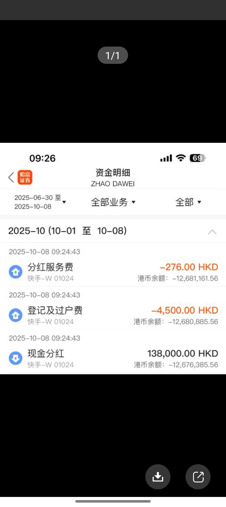 $纳指科技ETF(SZ159509)$ 快手分红