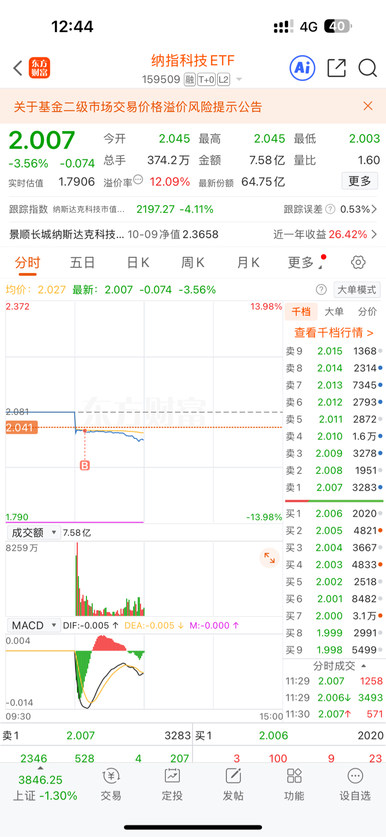 $纳指科技ETF(SZ159509)$ 果然被我这三瓜两枣买崩了