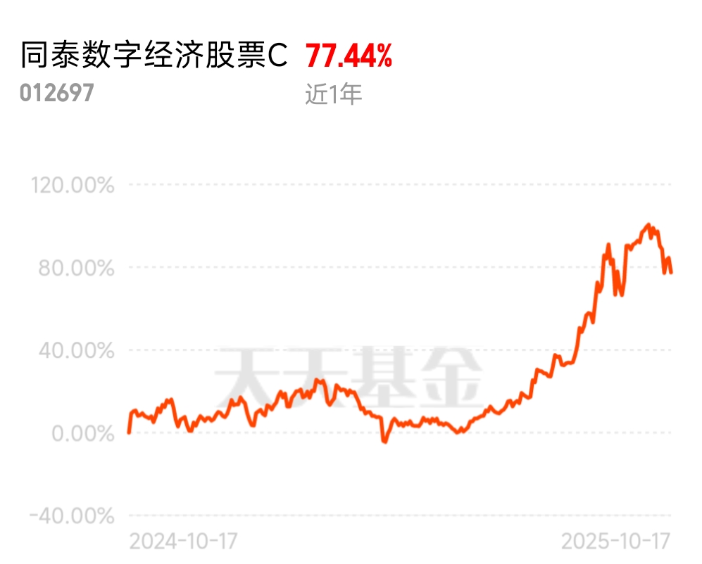 同泰数字经济C业绩表现持续卓越,近一年收益77.44%,排名稳居前2%。基金专注