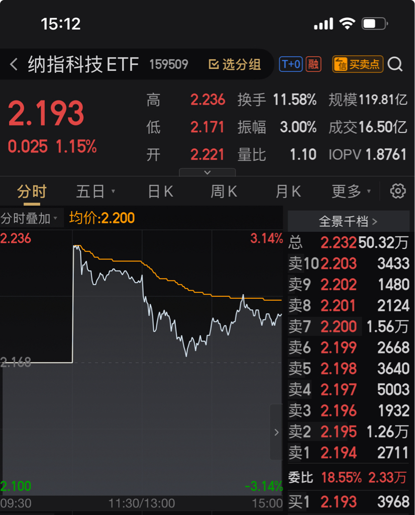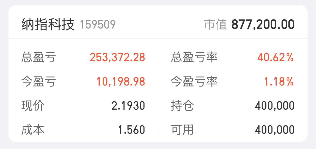 $纳指科技ETF(SZ159509)$ 只能这样子啦!增点仓保盈率点数
