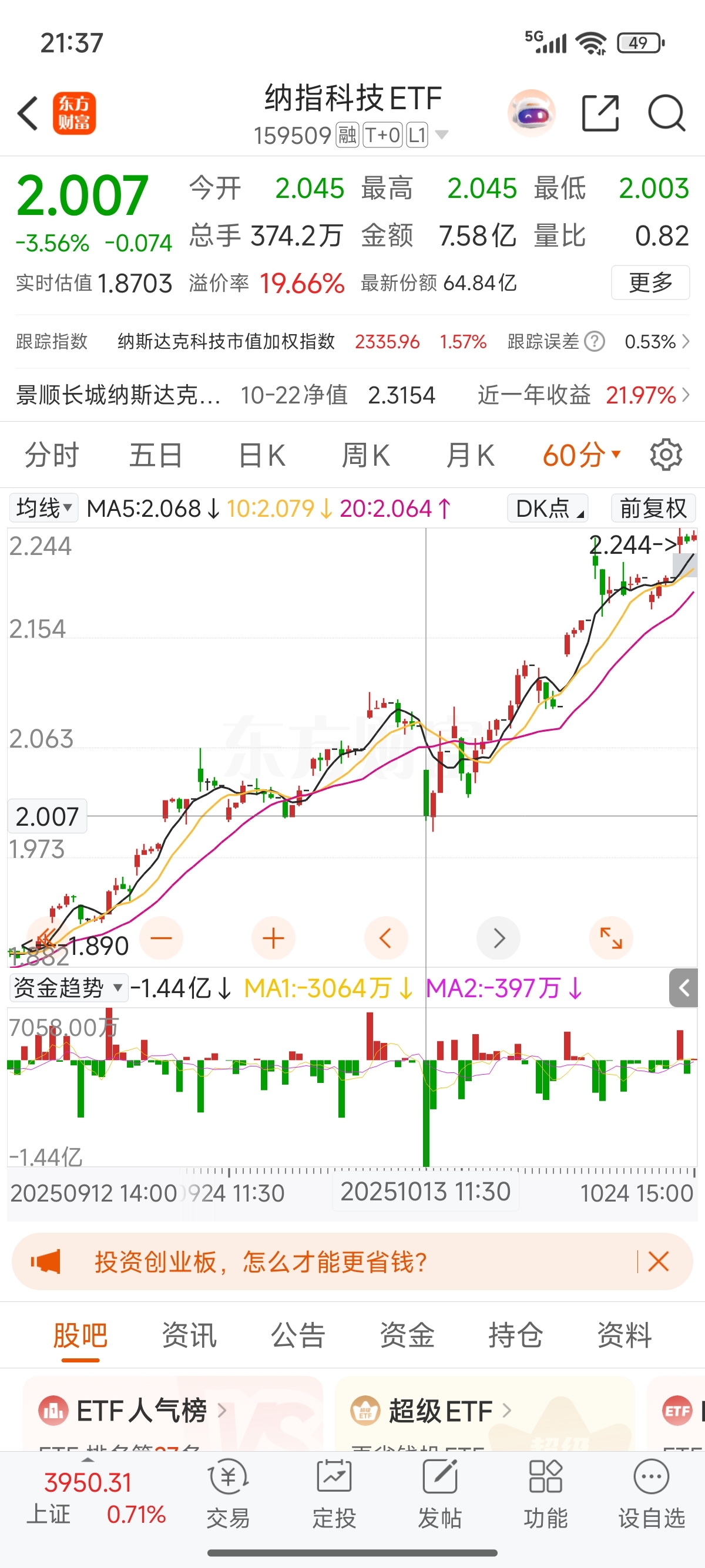 $纳指科技ETF(SZ159509)$ 半个月不到涨10个点!!!牛逼