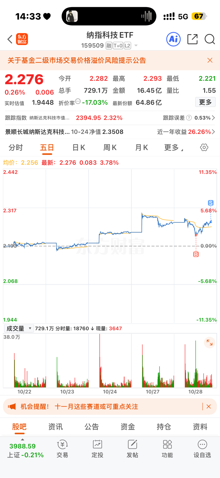 $纳指科技ETF(SZ159509)$ 超短线,两个点到手,爱怎么滴怎么滴