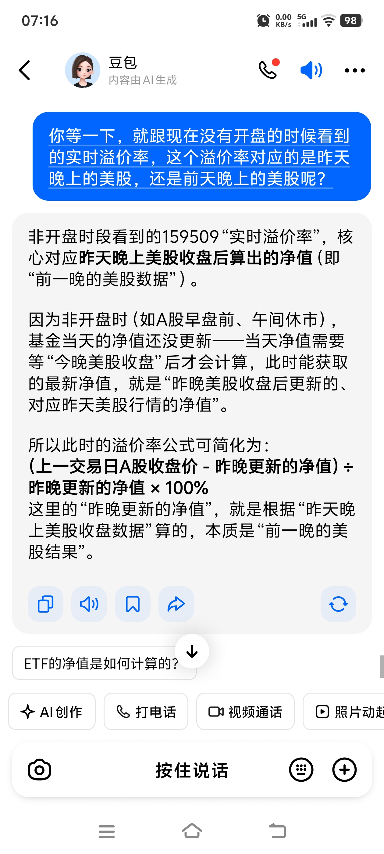 周三开盘前,周一晚上的美股涨幅,还没体现在溢价率里面?周二的涨幅要周三才能体现在