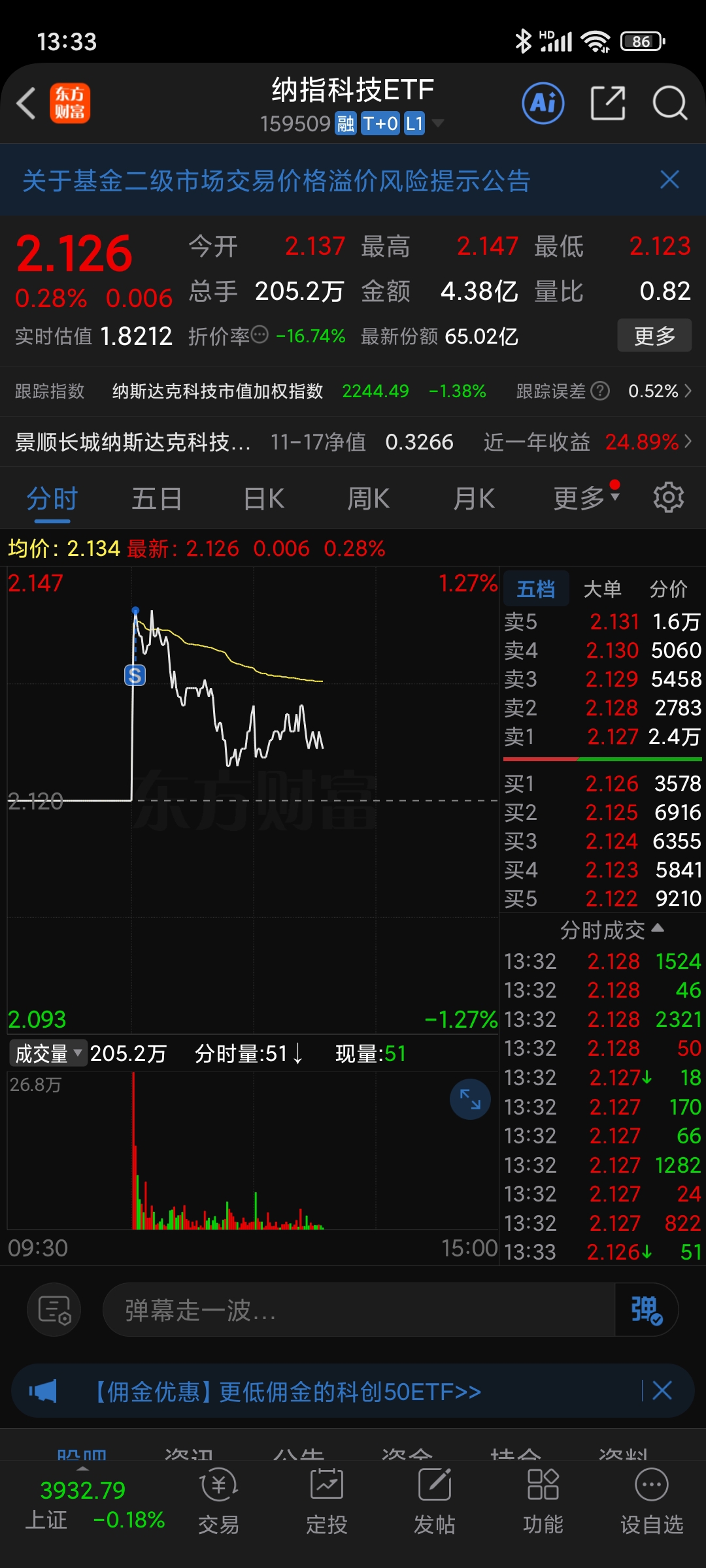 $纳指科技ETF(SZ159509)$ 昨晚就说了,今天会拉溢价,开盘就跑