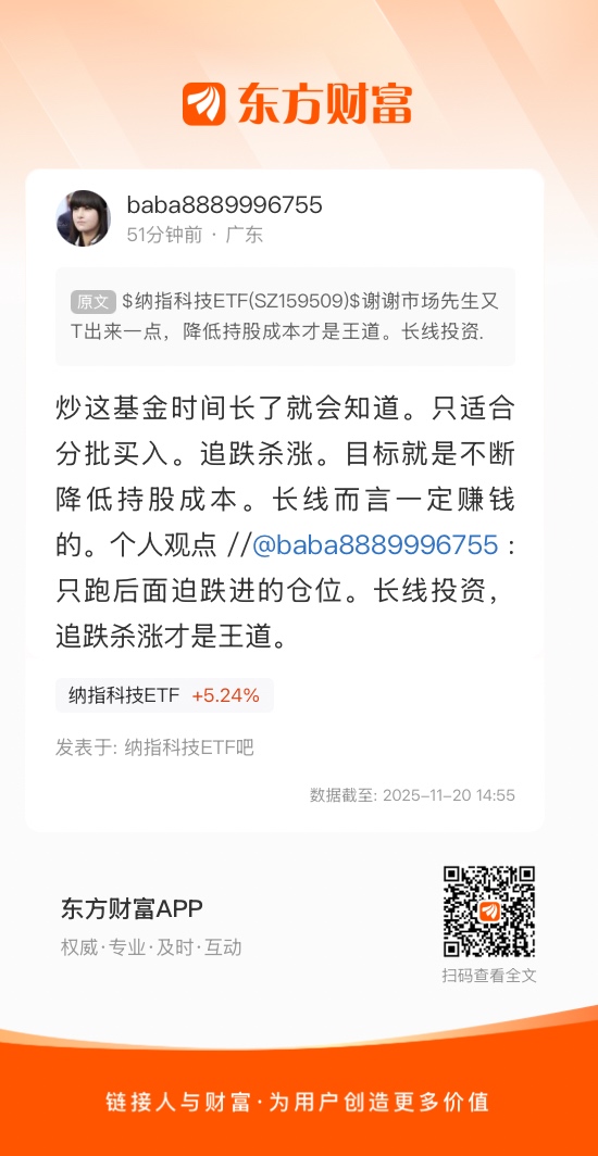 炒这基金时间长了就会知道。只适合分批买入。追跌杀涨。目标就是不断降低持股成本。长线而言一定赚钱的。个人观点 //@baba8889996755 :只跑后面迫跌进的仓位。长线投资,追跌杀涨才是王道。