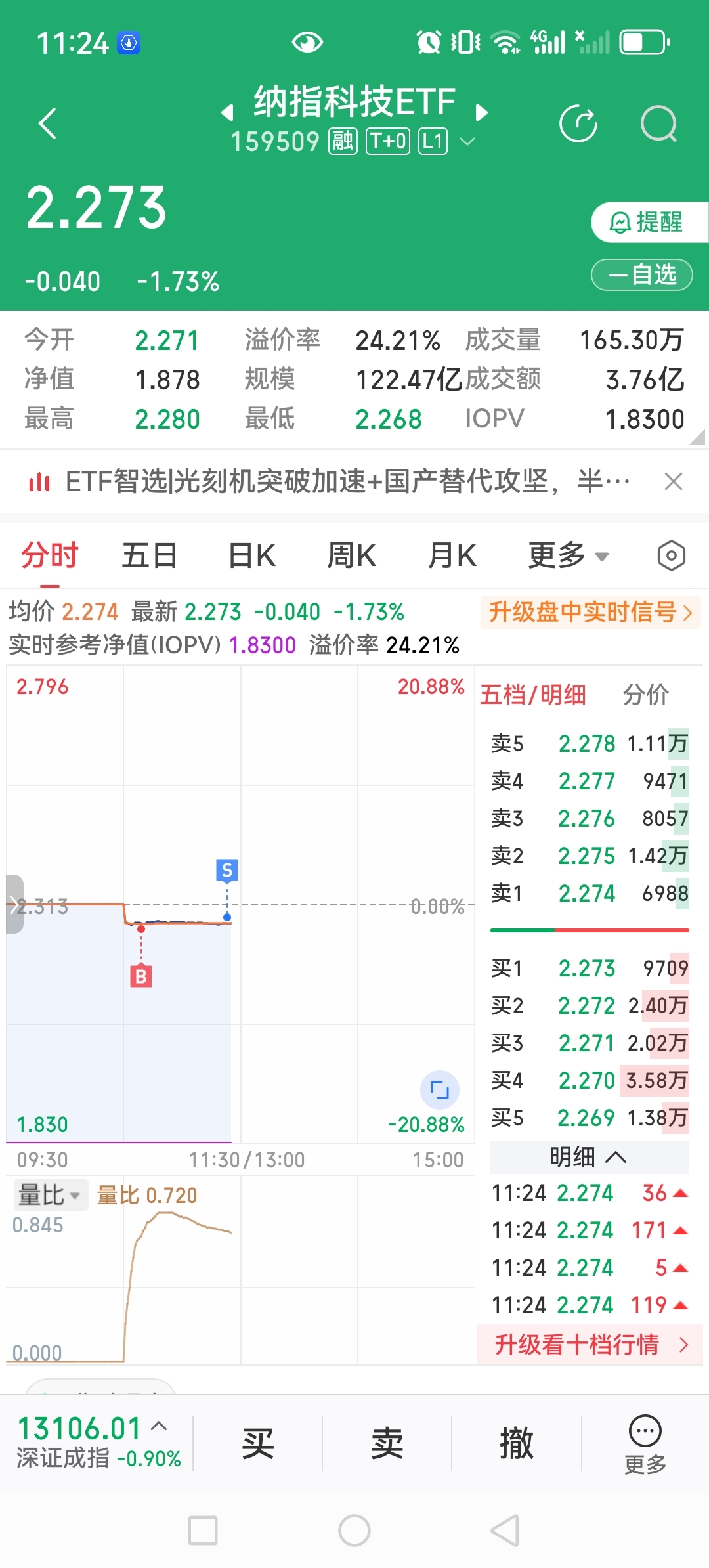 $纳指科技ETF(SZ159509)$ 亏手续费出。别问我为什么。我是韭菜啊
