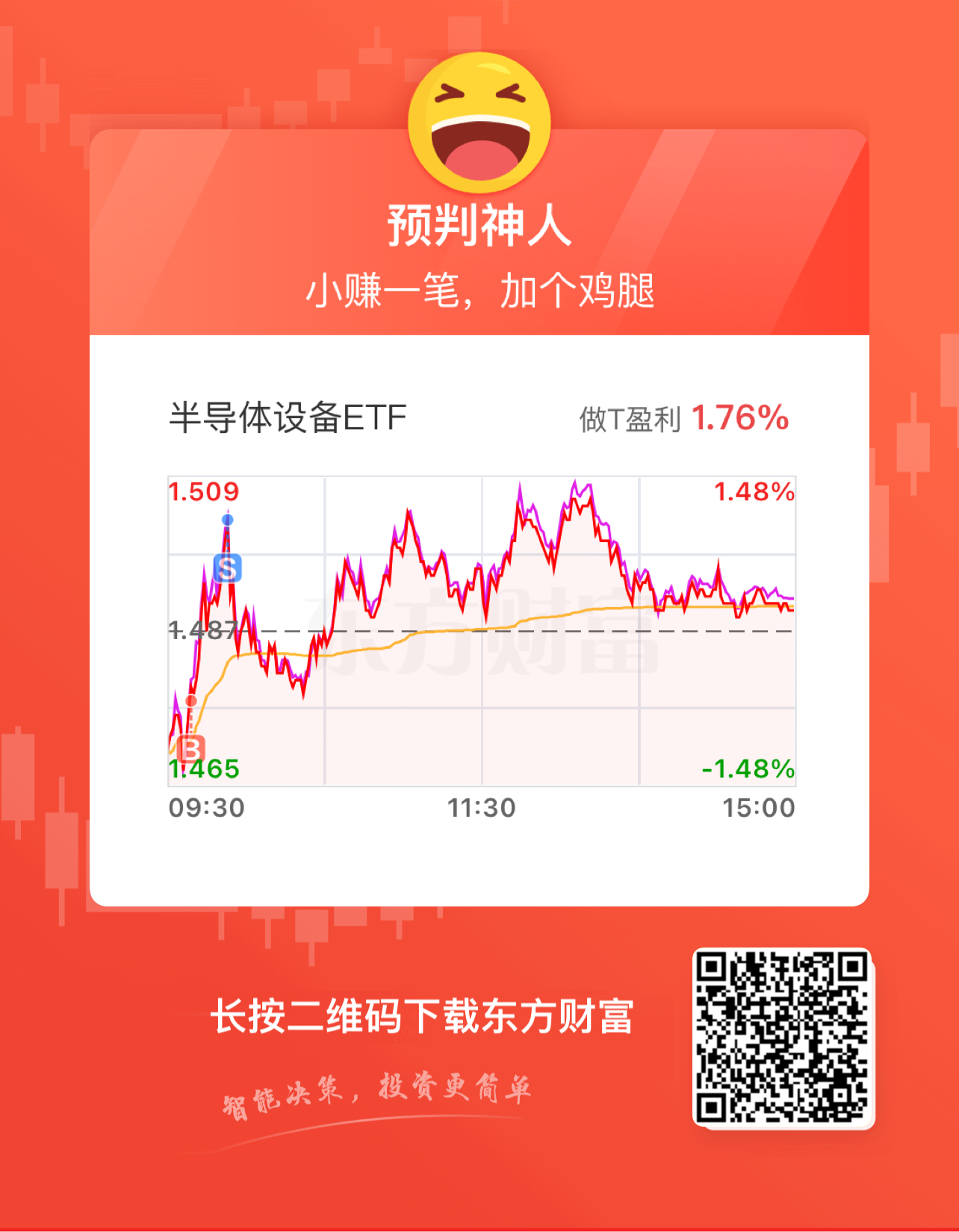 $半导体设备ETF(SZ159516)$ 今天的T做完了,周末不开市,好无聊。