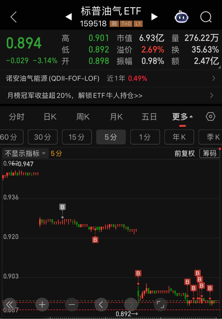 $标普油气ETF(SZ159518)$ 建个仓,明天如果跌继续买。