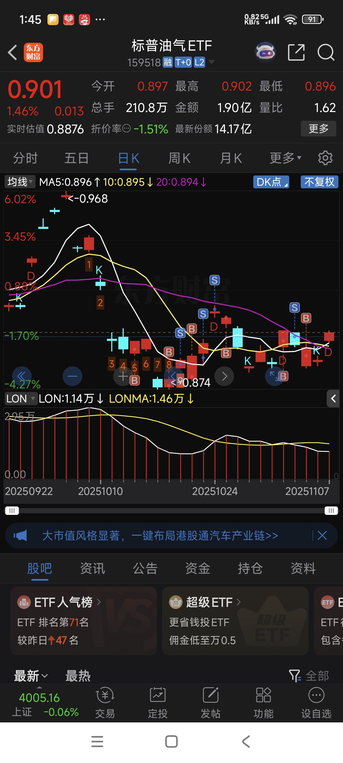 挂的0.908的卖单,能到吗?不到也出和个股差不多的,能做点t就t,能做个波段就