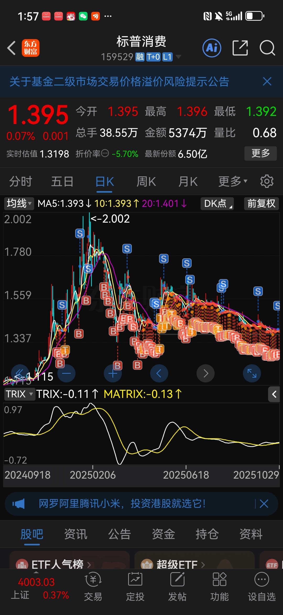 $标普消费(SZ159529)$ 怎么和大盘走势相反了不应该啊