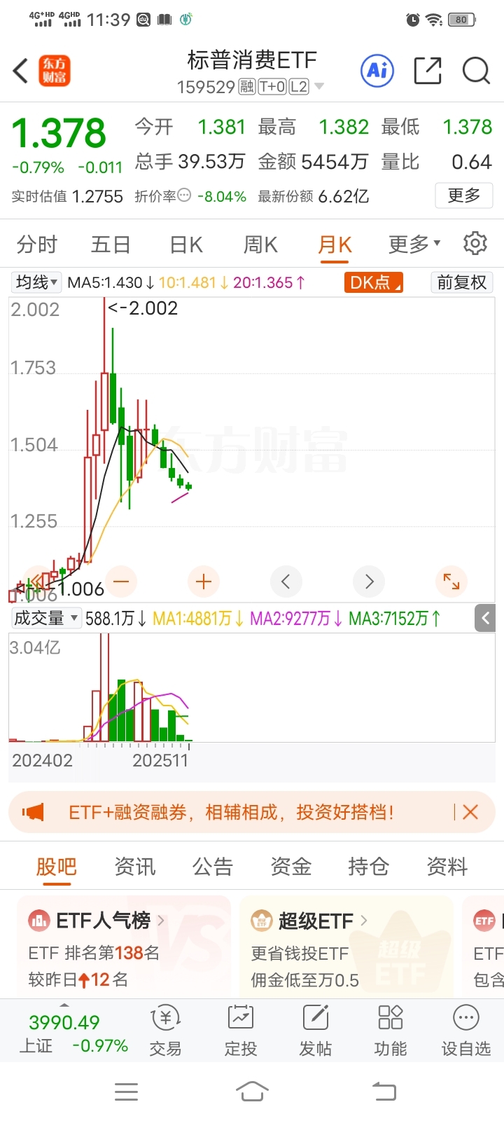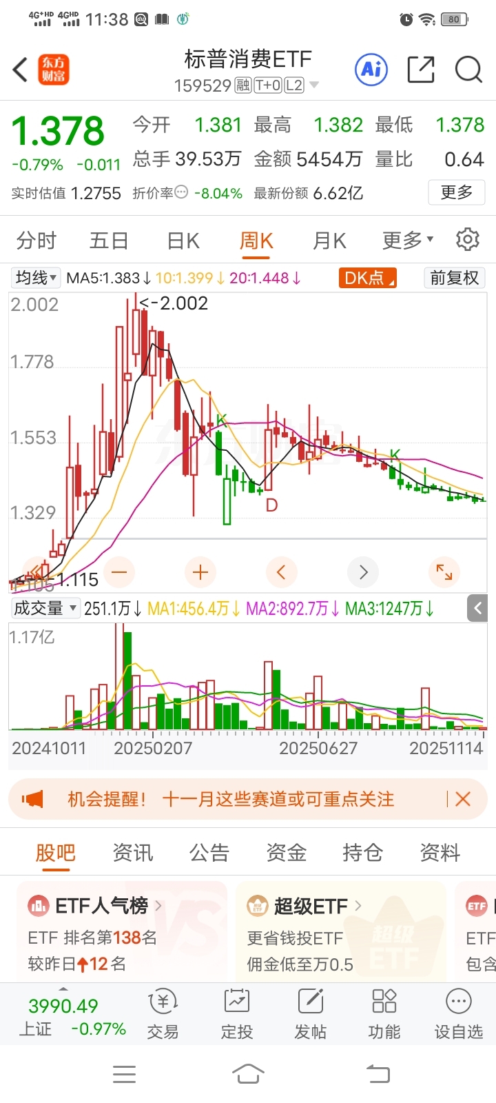 看好这只消费ETF的朋友,暂时不要冲动买,这些年的炒股经验告诉我跳空下跌的票没有