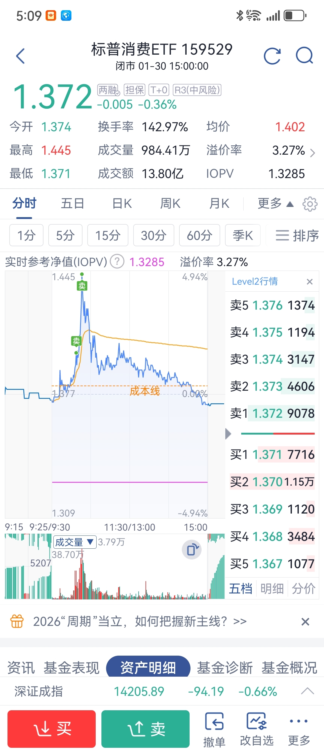 $标普消费ETF(SZ159529)$ 谁买了我四万元的抛压………,这走势接都不敢接回来!