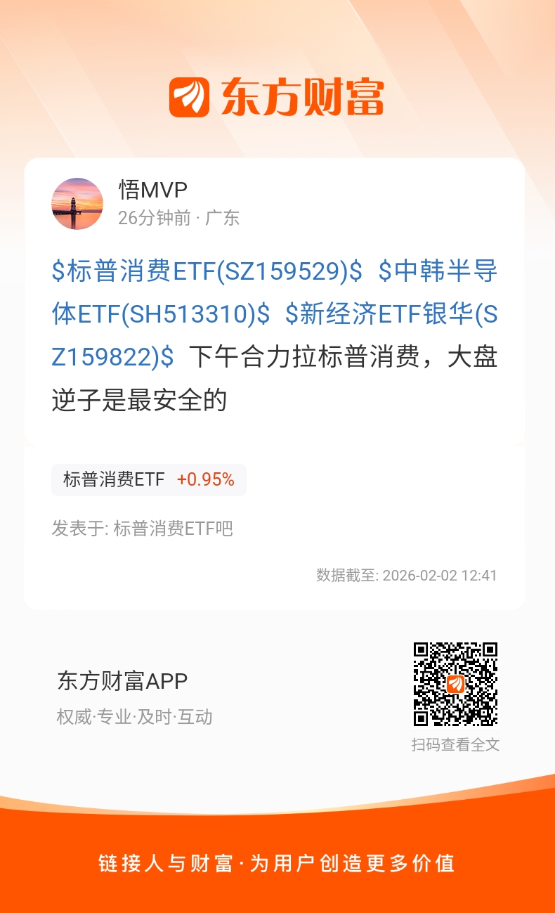$标普消费ETF(SZ159529)$ $中韩半导体ETF(SH513310)$ $新经济ETF银华(SZ159822)$ 下午合力拉标普消费,大盘逆子是最安全的