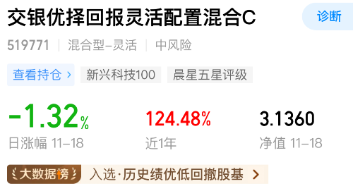 我加仓$交银优择回报灵活配置混合C(OTCFUND|519771)$1000元,本周科技板块有止跌企稳态势,趁还没修复最近调整失地,我继续在产品详情页面领3元加仓福利低吸加仓了,省到就是赚到。