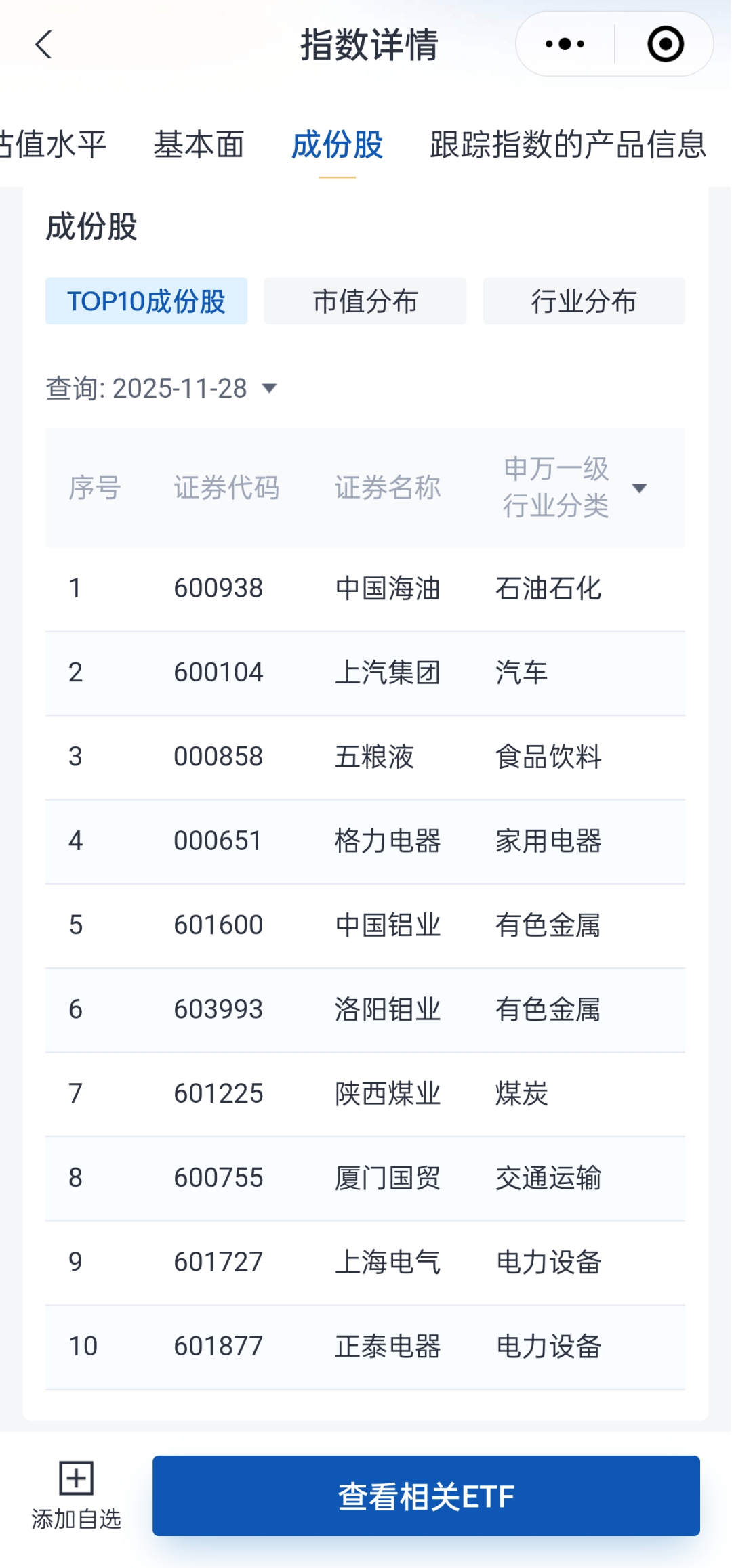 下图为指数前十大成份股,大家可以感受一下它的成份股都是一些什么样的公司。
