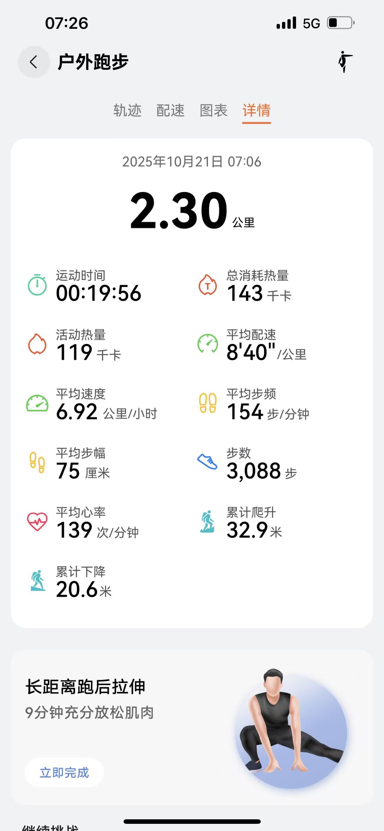 慢跑:2.30公里,累计慢跑:1108.00公里