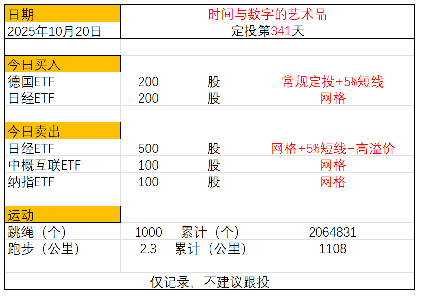 运动与投资第342天2025年10月21日今日定投:德国ETF买入200股日经E